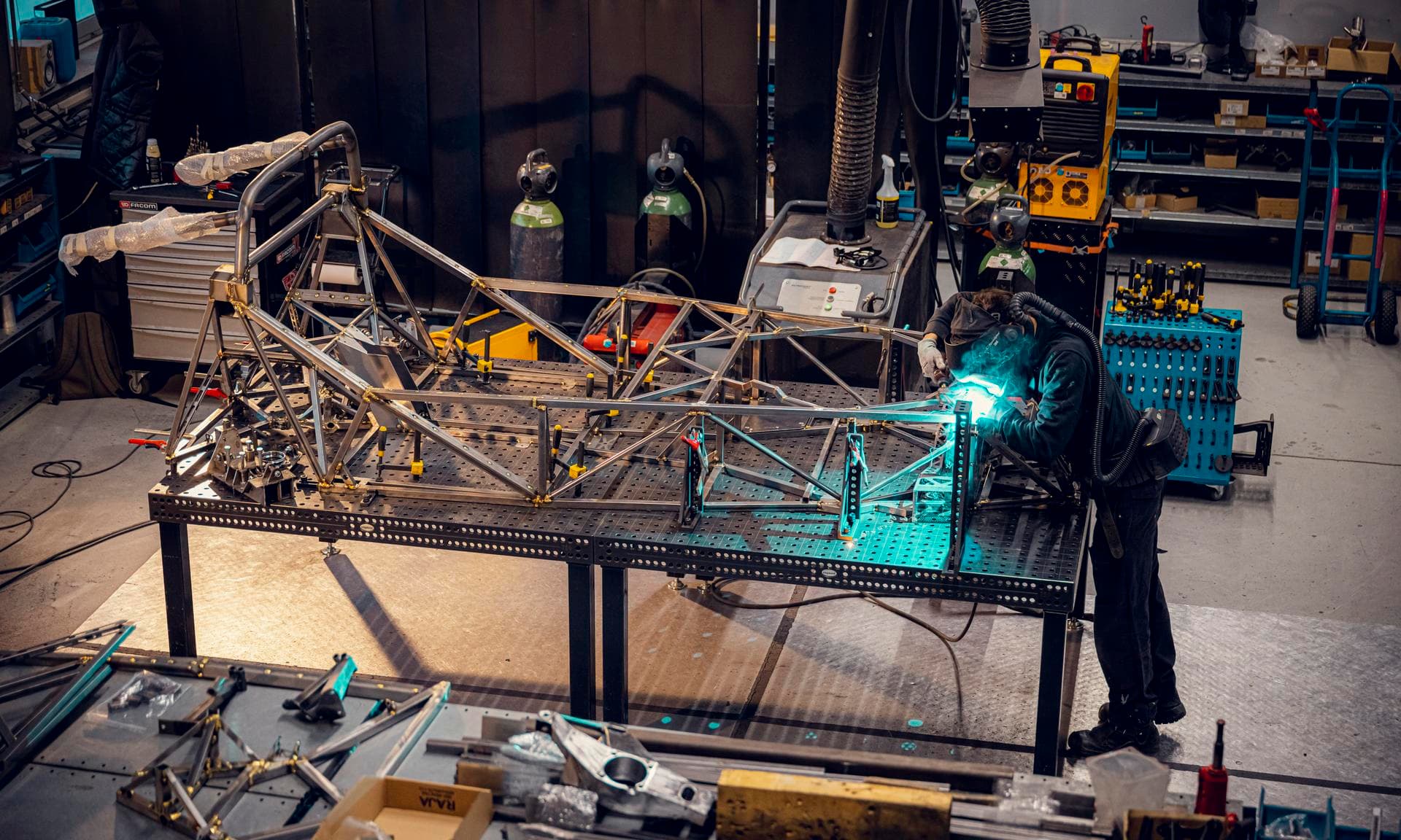 Donkervoort makes the core of each car in-house, right from laser-cutting the metal tubes of the chassis to copper welding the triangular segments together, and reinforcing them with carbon-fiber supports.